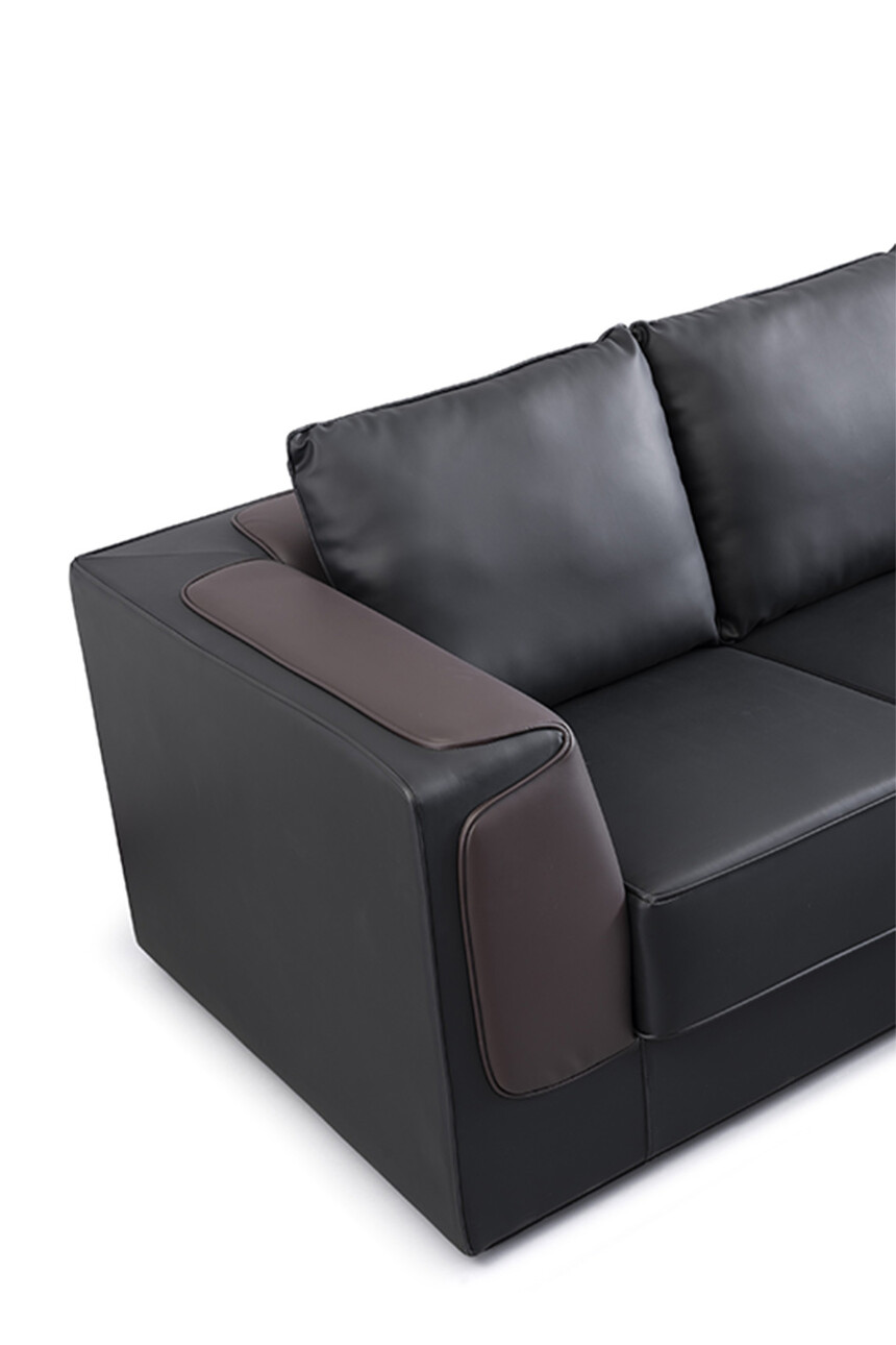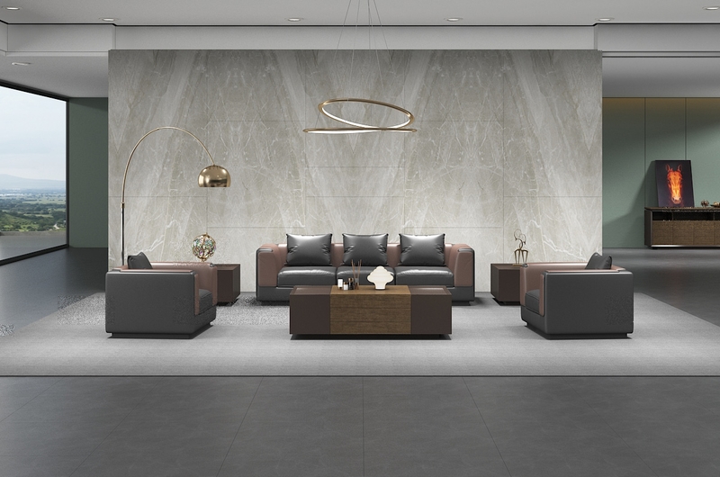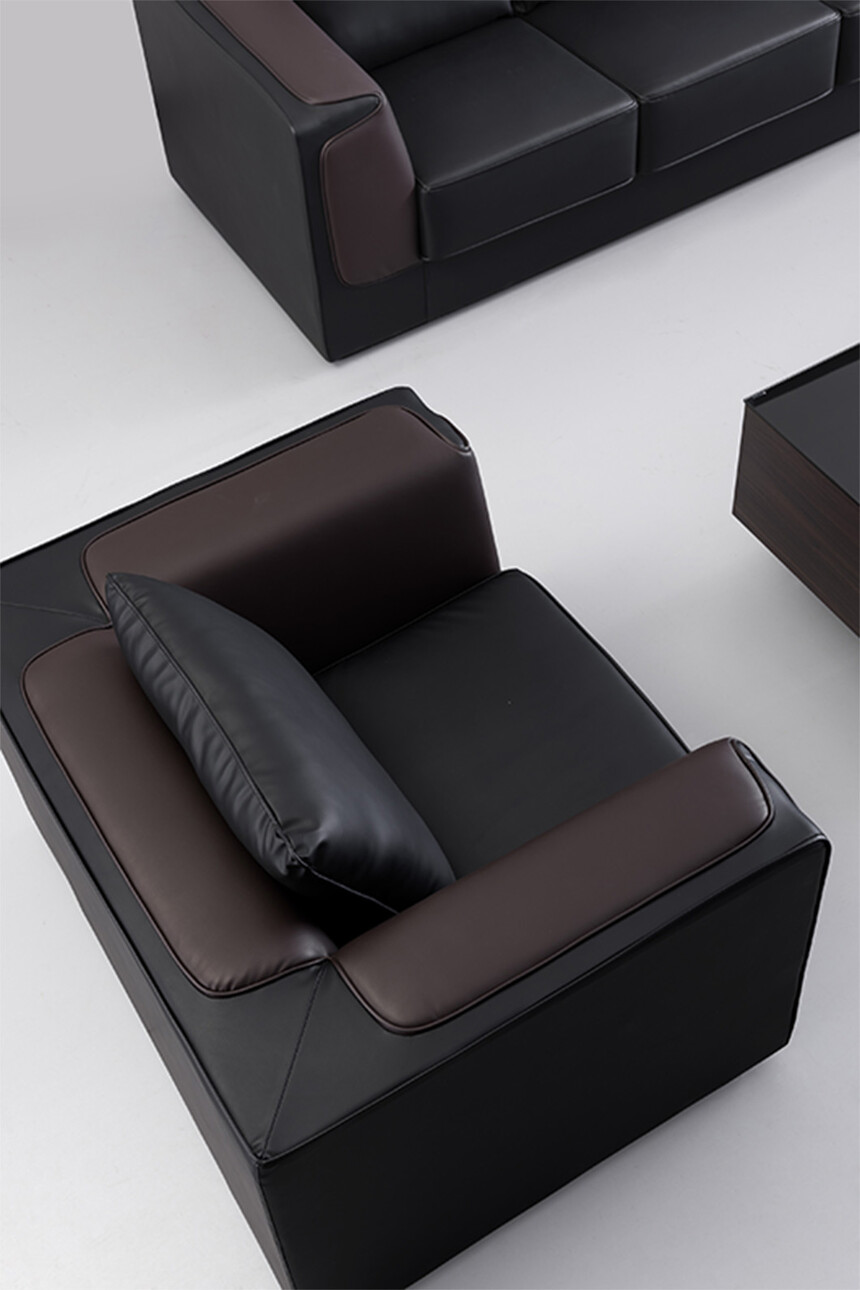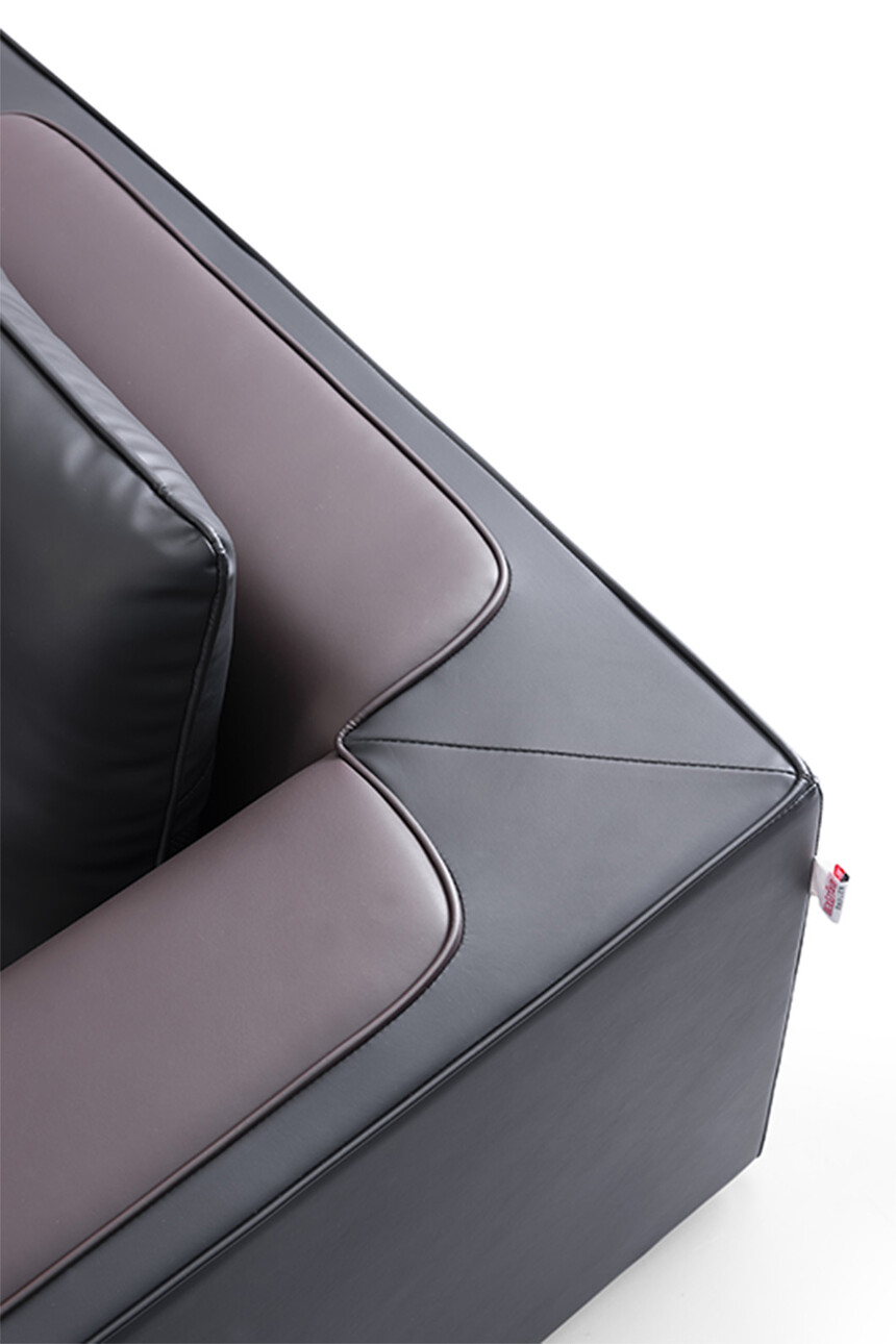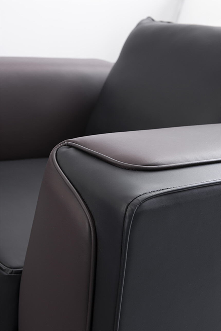 1、面料:選用意大利進口"陽光"牌牛皮(1.0mm厚),或高級超纖皮經液態浸色及防潮、防污等工藝處理、皮面更加柔軟舒適、光澤持久性好,紋理細膩,富有彈性; 2、實木板框架:優質進口含水率低9%以下的硬木木方及5mm的多層夾板,經防蟲、防腐等化學處理;3、海綿:采用杜邦公司的PU成型發泡高密度海綿高回彈海綿,表面有一層保護面,可防氧化,防碎,經過HD測試永不變形,靠背密度≧27kg/m3,座墊密度≧36kg/m3,回彈性≧35%,拉伸強度95kpa,撕裂強度達3.3N/cm,斷裂伸長率達185%,壓陷硬度190N。 4、工藝:采用人體工學設計,坐感舒適!
