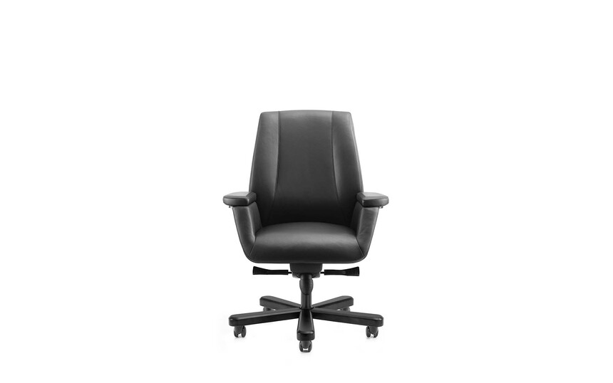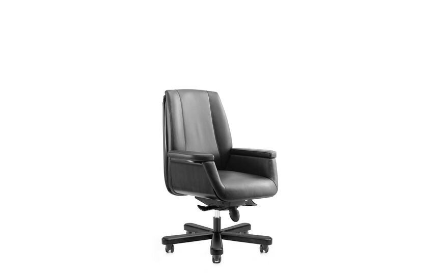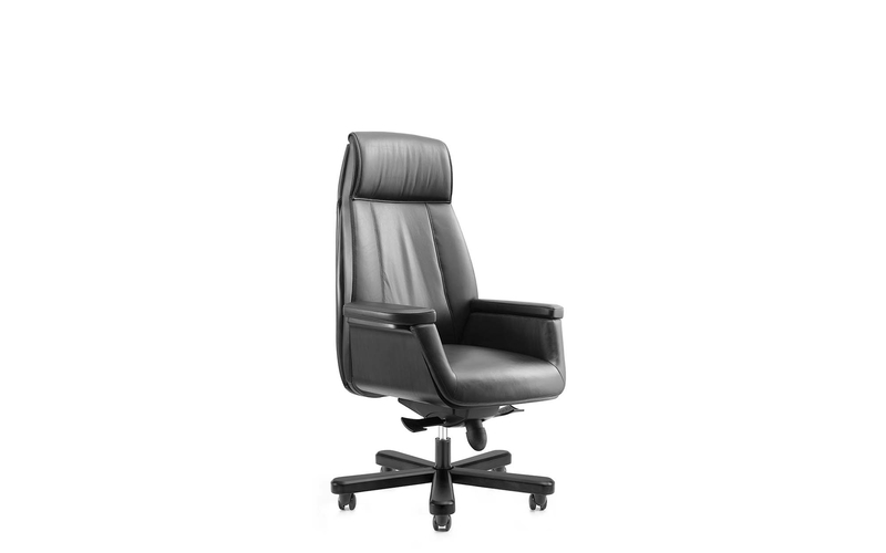 面料:采用A++級(jí)意大利進(jìn)口牛皮,耐磨性強(qiáng)、透氣性好;臺(tái)資“東亞”牌環(huán)保型高密度定型海綿(座位≥35kg/m3,靠背≥30Kg/m3)、 協(xié)強(qiáng)氣壓棒,承受壓力250kg,高飛模多功能底盤,具備升降、傾仰、多段式(5段)鎖定功能,優(yōu)質(zhì)油漆木腳及杜邦尼龍纖維合成腳輪。