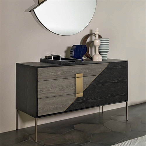 1、現代簡約備餐柜031產品,實木單板,及E1級環保人造板為主材,采用開放式美式透明涂裝,淡雅的黑啡色與工藝相結合,體現漂亮的紋理的同時,透著一股自然純樸的原野風味。