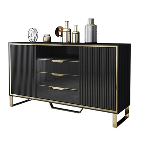 3、備餐柜左右兩邊及上部抽屜和柜門結合的封閉式空間搭配中間可上下調節的酒格設計別出心裁,增大儲物空間的同時更方便您陳列各式美酒;四個支撐腳設計,使備餐柜結構更加穩固。