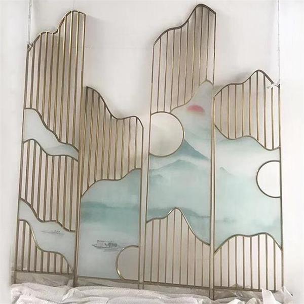 中式活動屏風(fēng)隔斷墻_酒樓飯店不銹鋼彩色屏風(fēng)