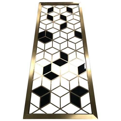 酒店現代立體圖形不銹鋼拉絲屏風主要由不銹鋼空心管經氬弧焊接,打磨,拉絲,拋光和電鍍制成。線條簡單適用于別墅隔斷裝飾,家庭玄關裝飾,書房隔斷等,看著高端大氣,牢固程度與耐用程度都是非常好的。