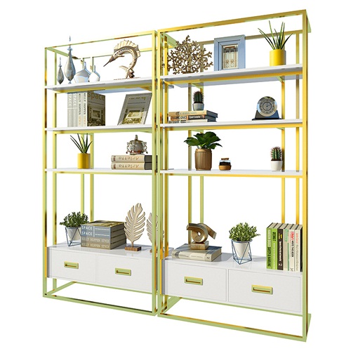 北歐香檳金不銹鋼金屬書架簡約_不銹鋼書架款式定制圖