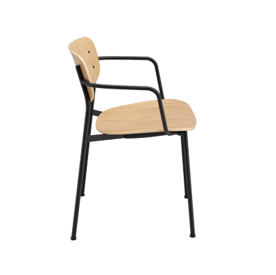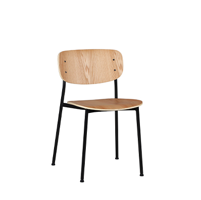 WM的造型質樸簡單,圓潤的椅背向后略微彎曲,貼合人體背部,寬闊的座面稍稍凹陷,穩穩承接重量。WM 系列分別有塑制與木質兩種選擇,塑料與金屬腿架的組合氣質低調百搭;木面與金屬腿架的配合,則是給空間增加了溫馨的氛圍。