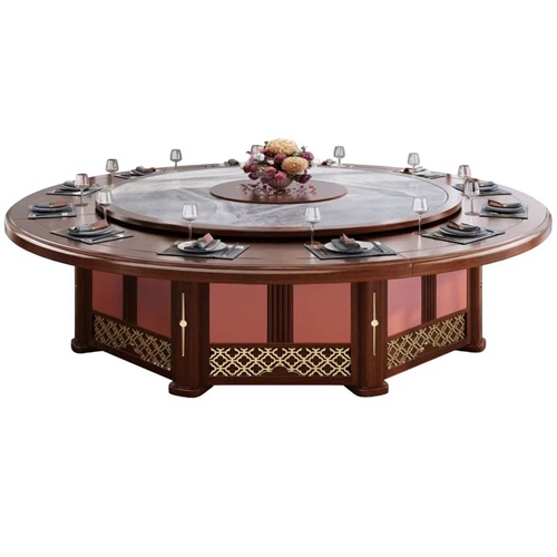 酒店高級新中式25人電動餐桌酒店實木電動豪華餐桌圖