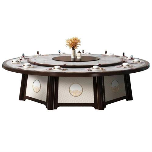酒店會所宴會餐廳新中式高檔實木巖板20位電動餐桌圖
