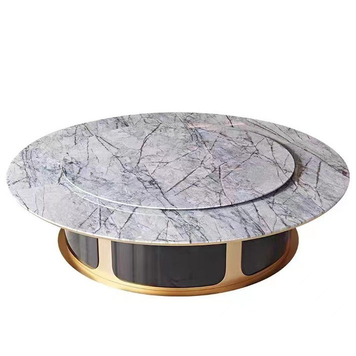 酒店會(huì)所大理石豪華大圓桌電動(dòng)餐桌圖