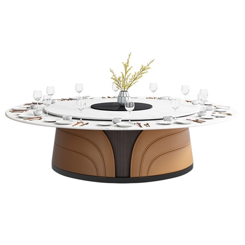 這款酒店新中式簡約電動圓桌帶轉盤餐桌