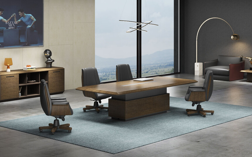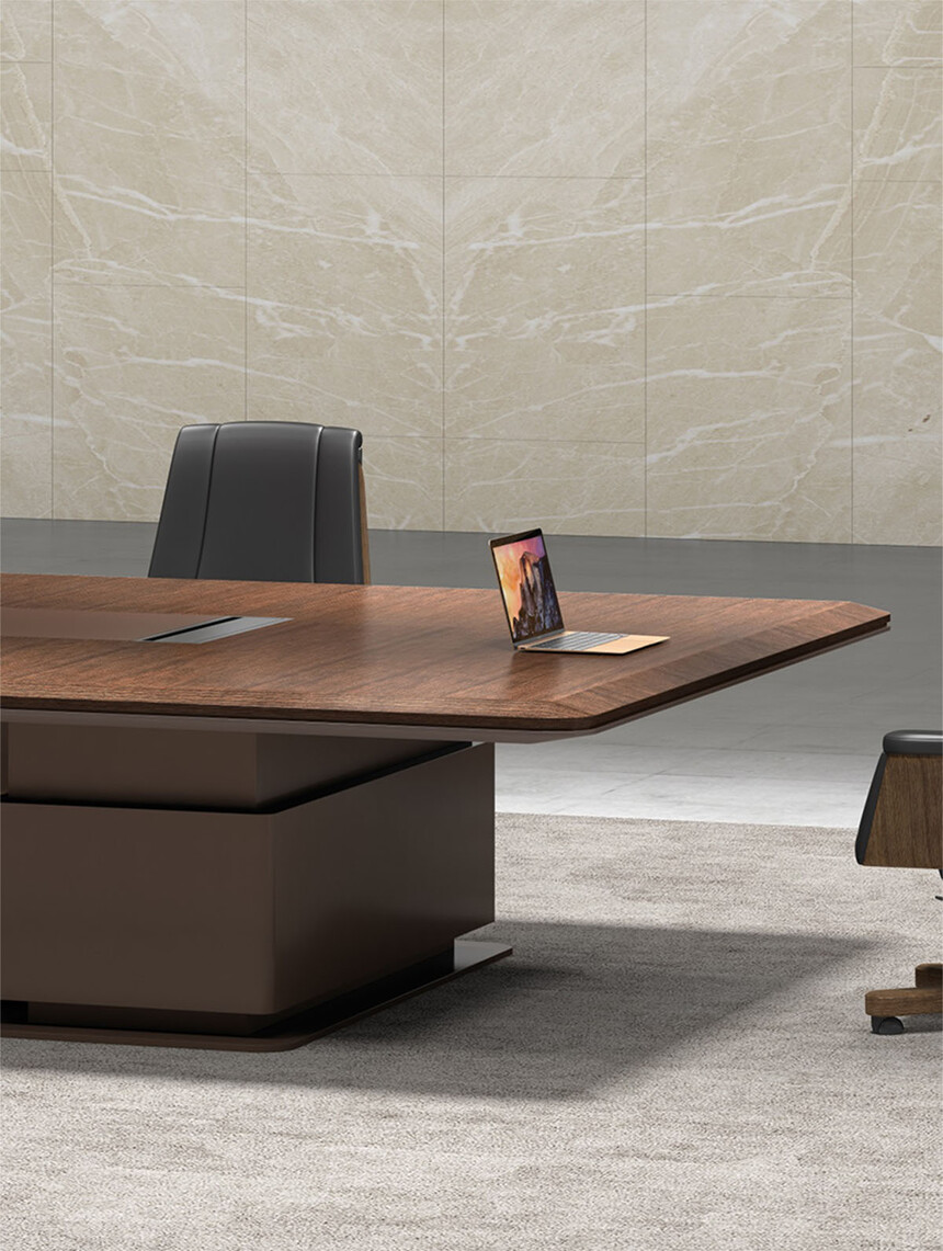 維登系列名取自經典奢侈品牌,時尚界品位和地位的象征—路易威登 (LV)。卓越品質,杰出創意和精湛工藝,LV 的三大特點在維登產品上得到完美體現:進口直紋胡桃木皮搭配獨特的棕色金屬漆,款式造型時尚大氣,精湛的斜切邊工藝,再配上優質進口五金配件,盡顯總裁辦公產品的高端和尊貴。