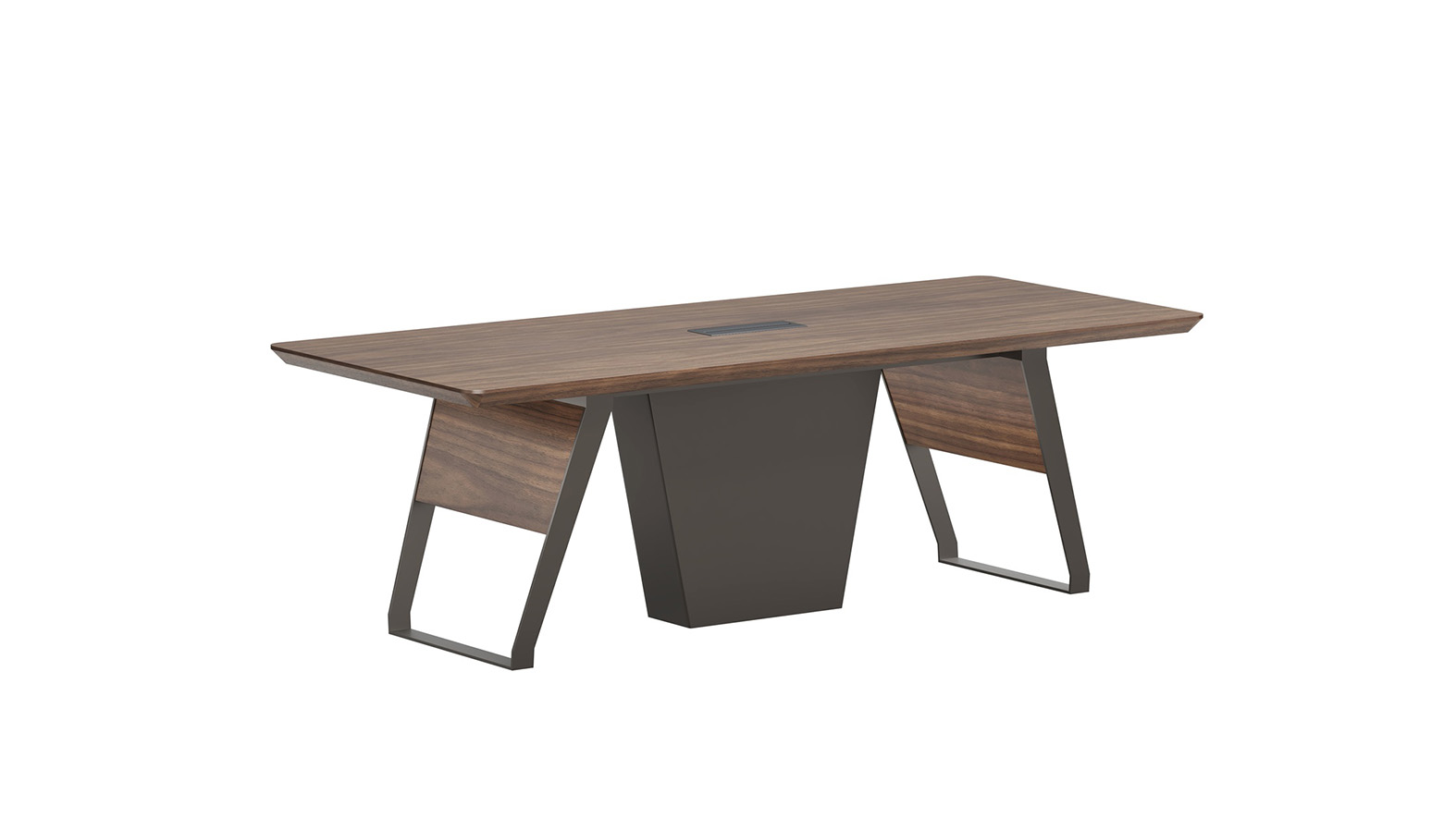 極致辦公系列,秉承華旦的時(shí)尚優(yōu)雅的品牌基因,以直線中穿插多維弧度的造型語意,將天然的半開放胡桃木紋與金屬的質(zhì)感有機(jī)組合,盡顯原木風(fēng)情與利落高效。