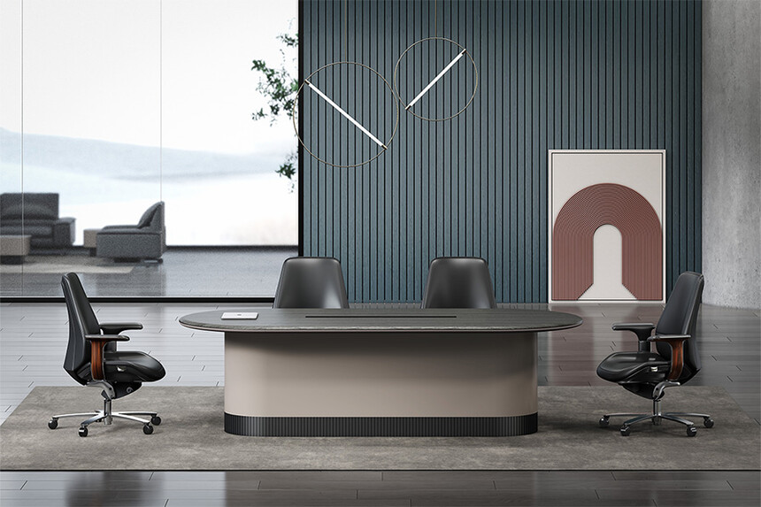 浩睿系列正如產品名“浩睿”所包含寓意一樣,是凝聚了產品研發創新思維與廣大智慧的結晶,專為商界精英與企業領袖而設計。采用了泰國灰橡為主色,配上咖啡灰色漆,紋理精致清晰、立體感與時尚感極強、立體感十足的格柵設計,層次感現代感實用性兼備。圓形臺面,側柜與擋板弧形連接,弧形柔和設計,無不展示出浩睿系列的細節之美,款式簡潔又不失莊重。