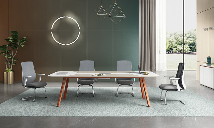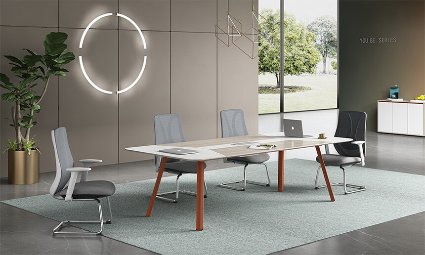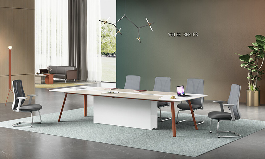 優格又名“有格”,代表了有品格、有格調。產品整體以“青春、時尚、動感”為設計主題,采用了大量的弧形與直線條交叉設計,將產品魅力展示的淋漓盡致。在一貫沉穩的深色辦公配色中,大膽運用了白色、卡其棕色與淺色木紋的撞色搭配,打破產品配色原有的嚴肅氛圍,賦予了產品生命力以及活力。獨特的臺腳與桌屏設計,動感十足,無不展示產品的細節之美。產品設計時尚,配置齊全,適合各種規模的辦公場所。