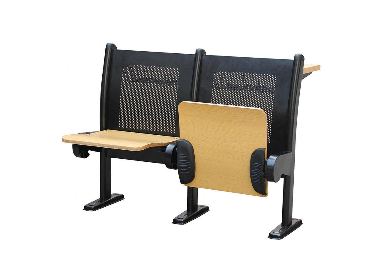 2、寫字板:板面采用優質三聚氰胺板、面粘防火板,支架采用鋼制鉸鏈活動式寫字板,牢固耐用,可承受150公斤重壓。