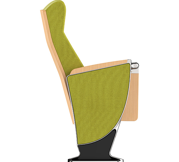 5.下藏式寫字板:寫字板鏈接鋁頭、托板采用優質鋁合金材料經模具一體壓鑄成型。寫字板面板采用實木多層板材料經模具一體壓鑄成型,寫字板固定方式為機械原理高強度螺栓,使寫字板鏈接部位越用越結實,不會出現松弛現象,尺寸規格:長度為381.4±2mm,寬度為261.2±2 mm,厚度為15mm;扶手和寫字板向上傾斜6.5度保證書寫自然狀態,寫字板打開回收時需帶消音功能,不可有反彈力與噪音出現.力學性能通過相關家具產品質量檢驗中心QB/T2602-2013《影劇院公共座椅》的相關檢測依據,寫字板靜載:300N。