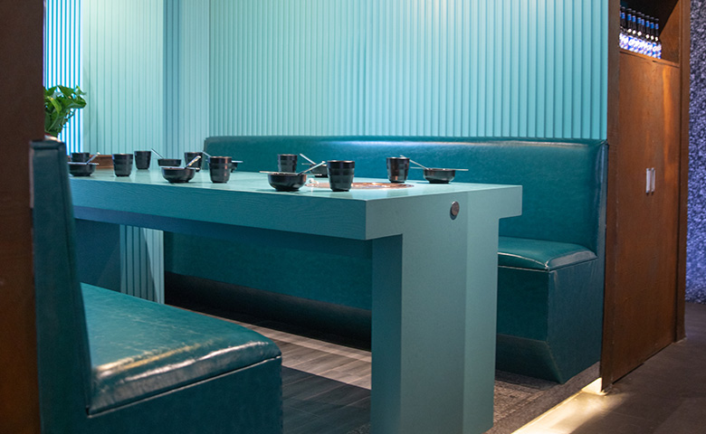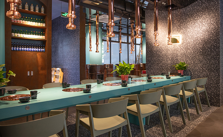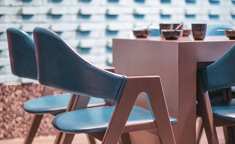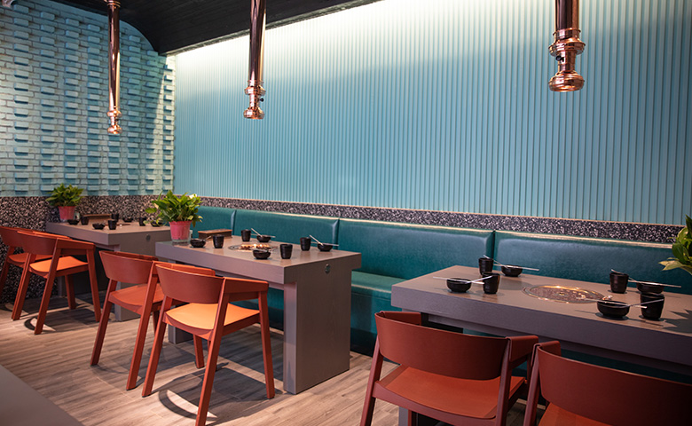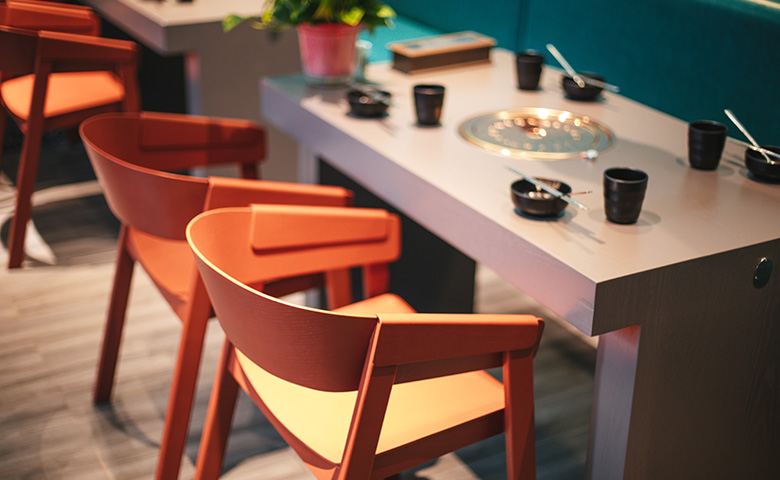 采用三朗曲木椅系列產品,整體按區撞色設計,秀食可餐。