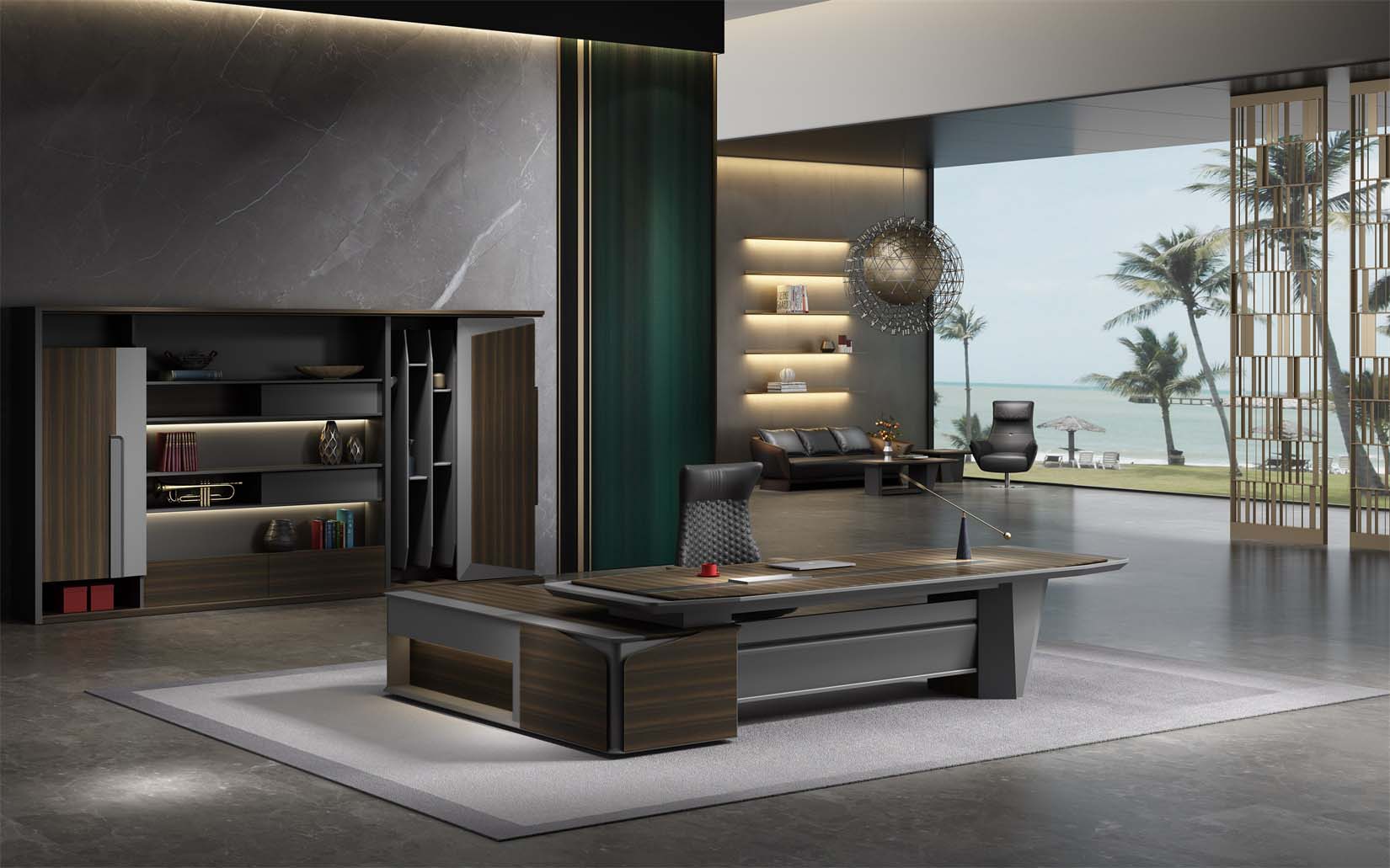慕格斯系列簡潔的設計演繹最本質的意式輕奢美學,設計線條流暢清晰。簡約而不失時尚,功能性與高顏值都得以兼顧。臺面以”微懸浮式“的設計理念打破傳統,將工作區完美劃分,臺腳以精確利落的線條刻畫,穩重不失力度。展示使用者理智成熟的氣質,萬物兼容的氣度,打造現代時尚的高效商務辦公空間。