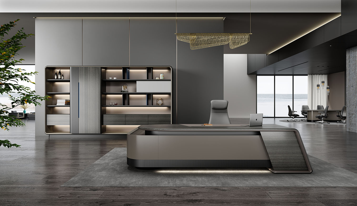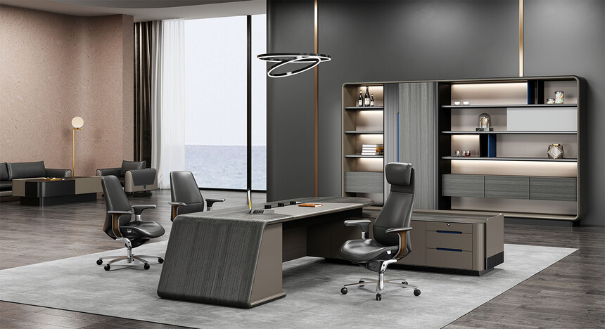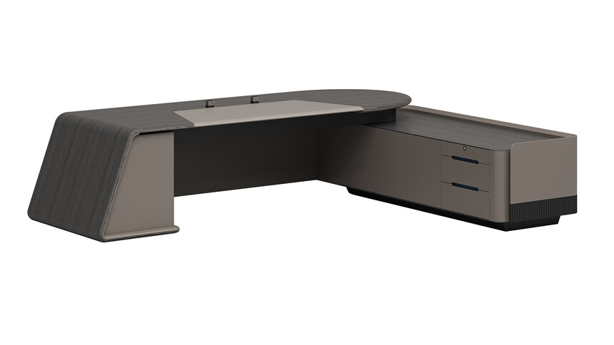 浩睿系列正如產(chǎn)品名“浩睿”所包含寓意一樣,是凝聚了產(chǎn)品研發(fā)創(chuàng)新思維與廣大智慧的結(jié)晶,專為商界精英與企業(yè)領(lǐng)袖而設(shè)計(jì)。采用了泰國灰橡為主色,配上咖啡灰色漆,紋理精致清晰、立體感與時(shí)尚感極強(qiáng)、立體感十足的格柵設(shè)計(jì),層次感現(xiàn)代感實(shí)用性兼?zhèn)洹A形臺面,側(cè)柜與擋板弧形連接,弧形柔和設(shè)計(jì),無不展示出浩睿系列的細(xì)節(jié)之美,款式簡潔又不失莊重。
