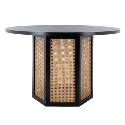 餐廳家具廠家為您展示會所酒樓新古典藤編實木特色圓桌圖片展示\價格說明\定做服務。在這款會所酒樓新古典藤編實木特色圓桌上,沿海涼爽風格與現代時尚相得益彰。天然藤條六角形底座與光滑的桌面和面板裝飾完美搭配,完美展示了