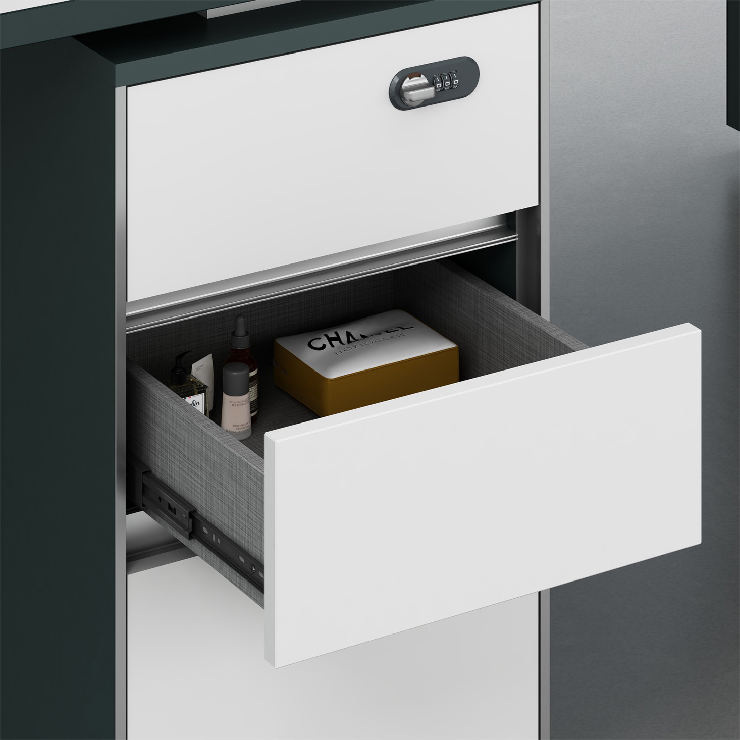 - A:澳洲尤加利+進口暖白 B:進口暖白+暗夜綠 不含桌屏(抽屜帶密碼鎖)