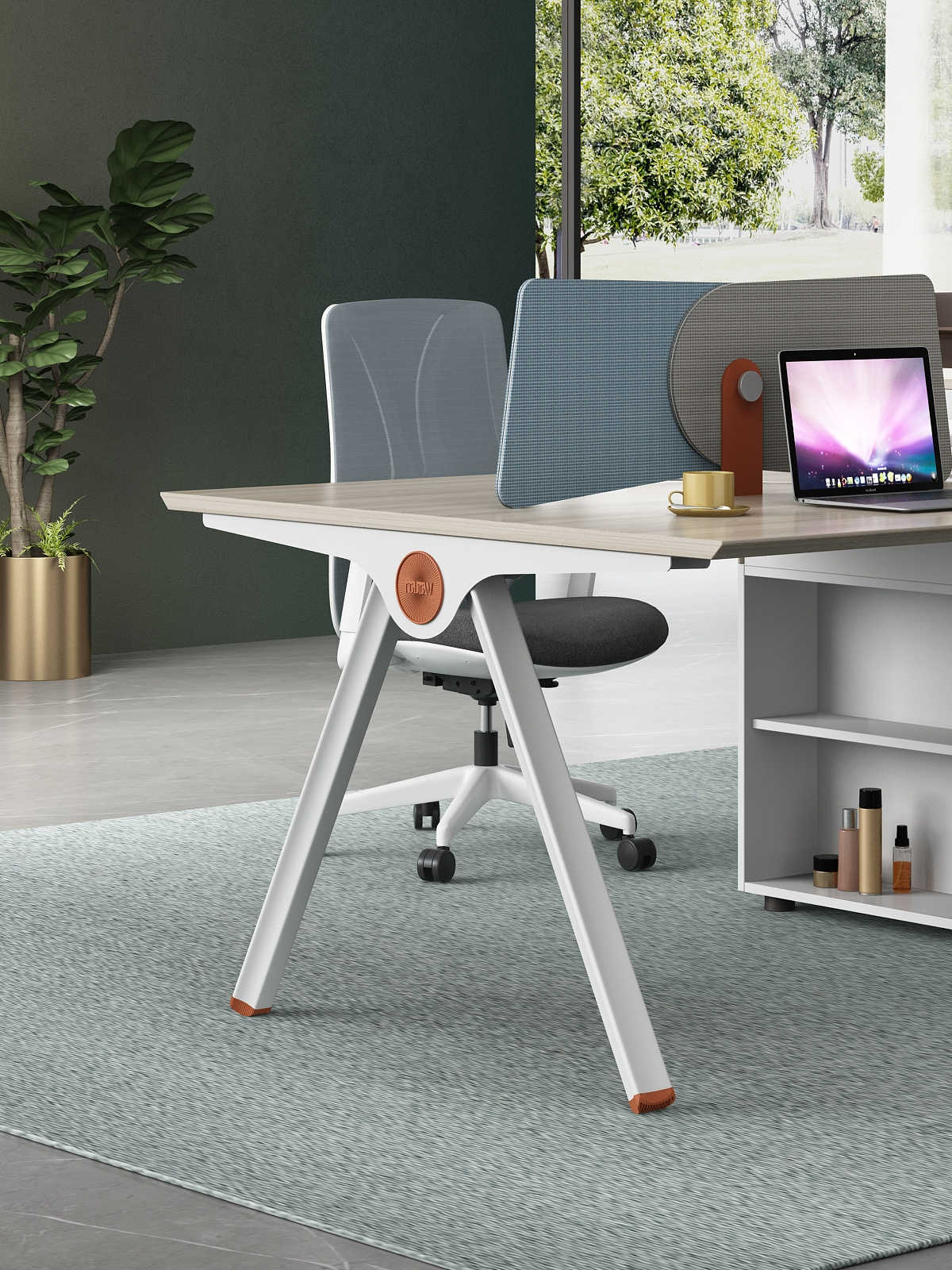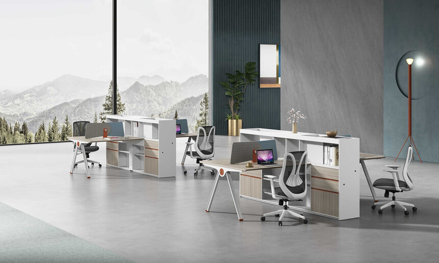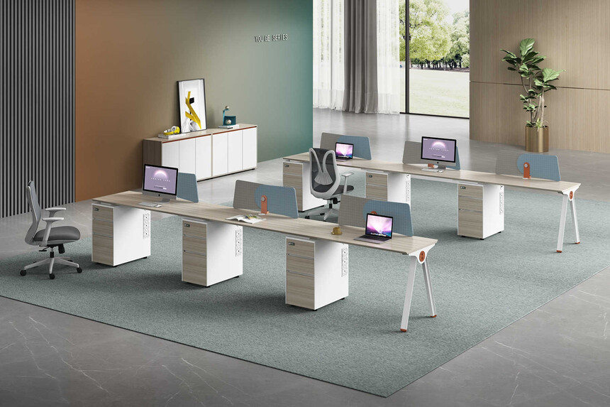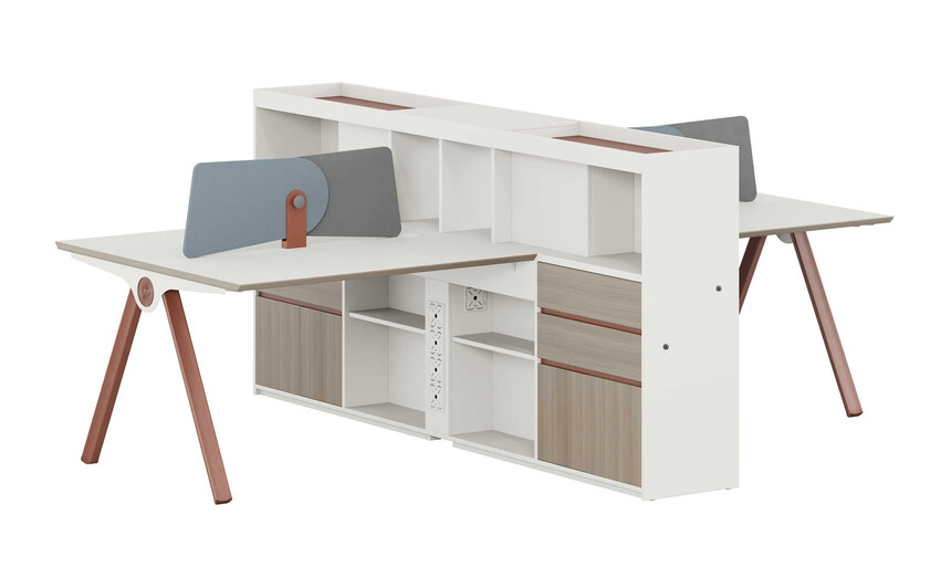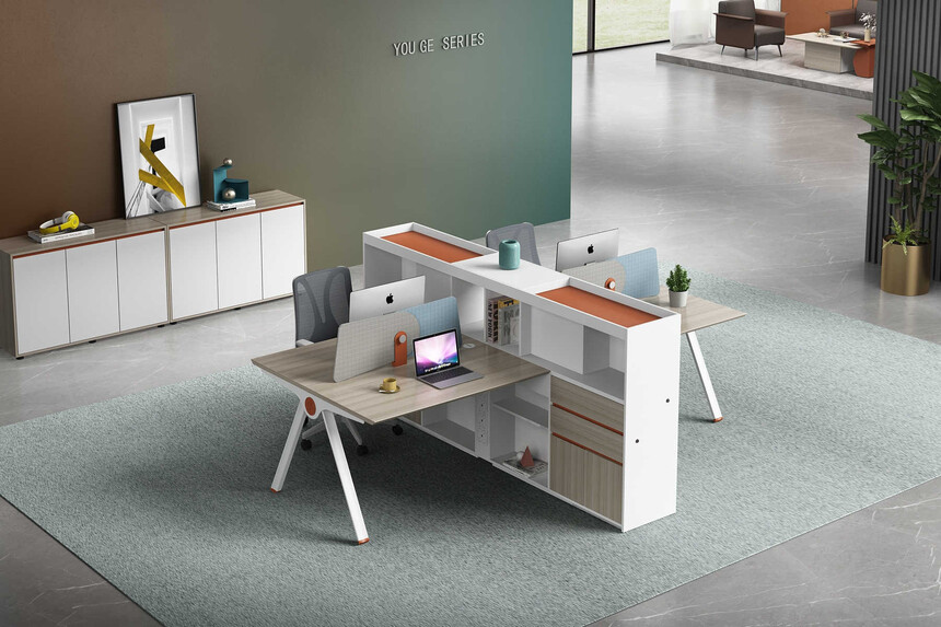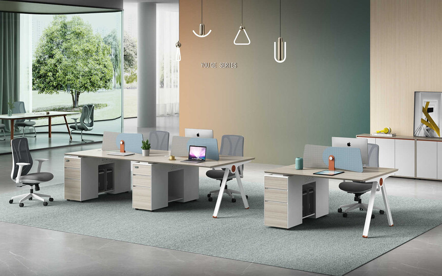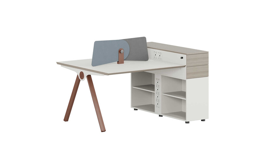 優格又名“有格”,代表了有品格、有格調。產品整體以“青春、時尚、動感”為設計主題,采用了大量的弧形與直線條交叉設計,將產品魅力展示的淋漓盡致。在一貫沉穩的深色辦公配色中,大膽運用了白色、卡其棕色與淺色木紋的撞色搭配,打破產品配色原有的嚴肅氛圍,賦予了產品生命力以及活力。獨特的臺腳與桌屏設計,動感十足,無不展示產品的細節之美。產品設計時尚,配置齊全,適合各種規模的辦公場所。